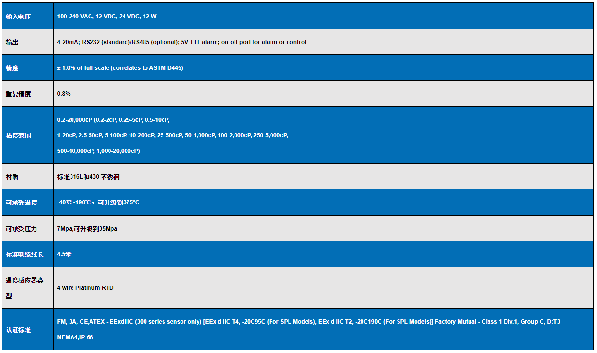 VISCOpro2000 在線粘度計技術(shù)參數(shù):