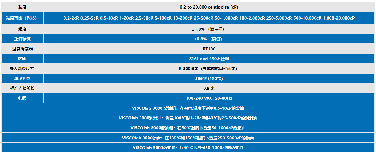 VISCOlab3000實(shí)驗室粘度計技術(shù)參數(shù):